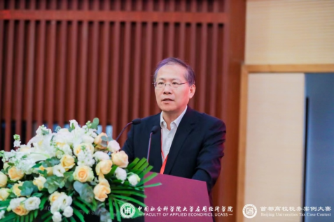 中国社会科学院大学副校长、博士生导师高文书教授代表主办方致辞。他首先对各位嘉宾和选手的到来表示热烈欢迎和衷心感谢,并简要介绍了中国社会科学院大学的发展历程。他期待本次大赛将进一步加强首都高校间的联动,增强同学们学以致用、不断创新的意识和能力。希望参赛选手们都能保持良好心态,奋勇争先。他预祝各参赛队伍都能在此次大赛中,展现出团队与个人风采,取得优异成绩。