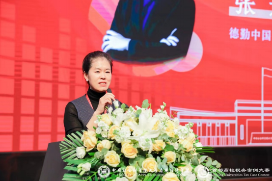 德勤中国合伙人张进女士作为案例命题方和大赛评委做赛事点评。她充分肯定了同学们在此次比赛中的精彩表现,希望同学们可以延续比赛中的竞技精神,在未来的学习和工作中攻破万难。同时,她也希望未来能有更多优秀的税务专业人才涌现,与德勤一起,为祖国税务事业贡献力量。