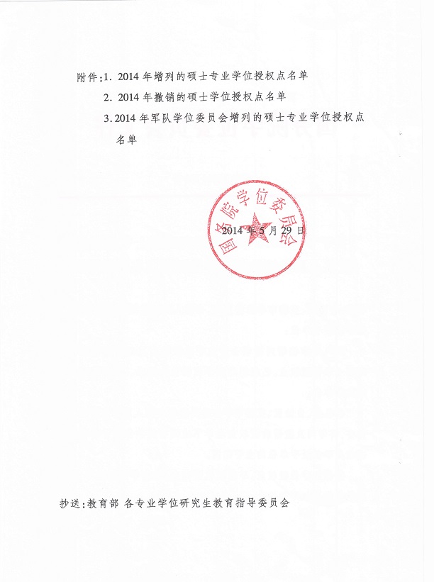 附件:《关于下达2014年审核增列的硕士专业学位授权点及撤销的硕士学位授权点名单的通知》(学位[2014]14号)