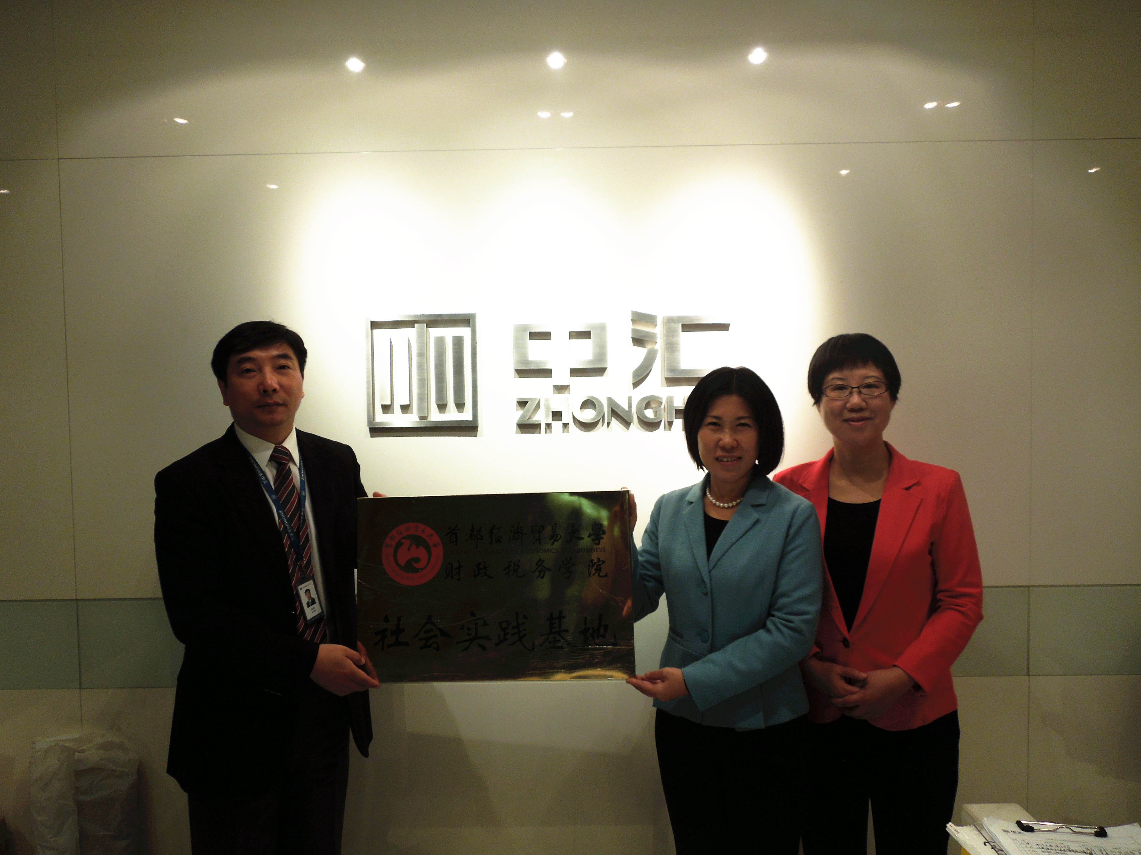 2013年11月28日,首都经贸大学财政税务学院社会实践基地挂牌仪式在中汇税务师事务所有限公司举行。首都经贸大学财政税务学院副院长蔡秀云、税务系主任刘颖与中汇税务师事务所副总裁魏斌、人力资源部主管杨国权就完善产学研基地培养人才问题进行了沟通,并研讨加强校企合作、进一步夯实产学研基地培养项目等方面的问题。