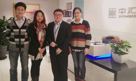 我中心李为人副主任(左二)到中经阳光税收筹划事务所跟踪了解学生实习情况