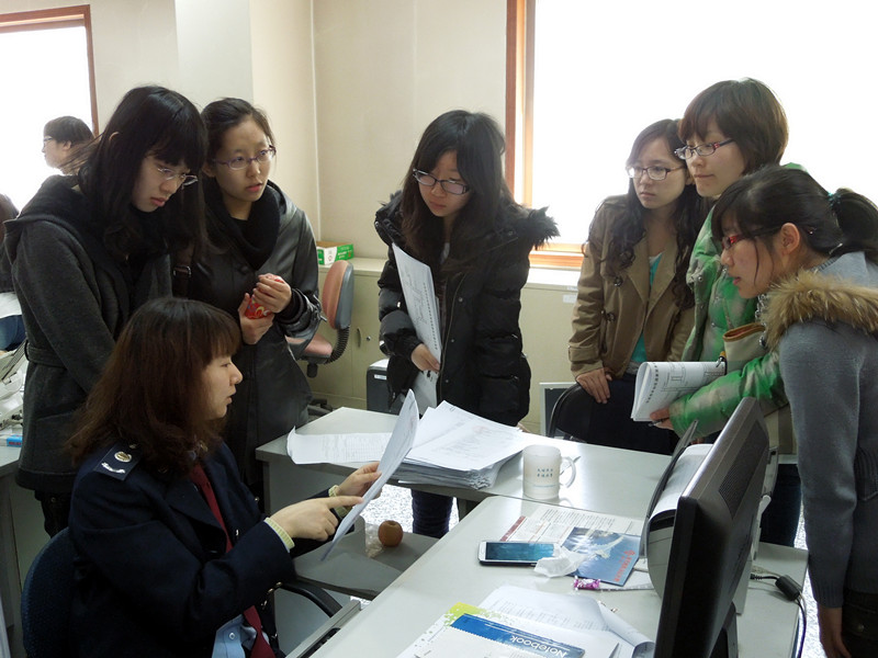 本次活动的首站是北京市丰台区企业联合服务大厅。税务机关的工作人员向同学们详细讲解了作为税务管理的第一步——税务登记工作的详细步骤。同学们认真倾听,并不时提出一些问题。活动的第二站是北京市丰台区国家税局办税服务大厅。在此,同学们进入工作区并与工作岗位上的税务工作者直接交流,真正亲身感受到税务机关忙碌的一线工作,并且直观了解到税收工作的实际流程。在工作人员耐心的讲解和引导下,在同学们认真学习和思考中,此次活动划上了一个圆满的句号。