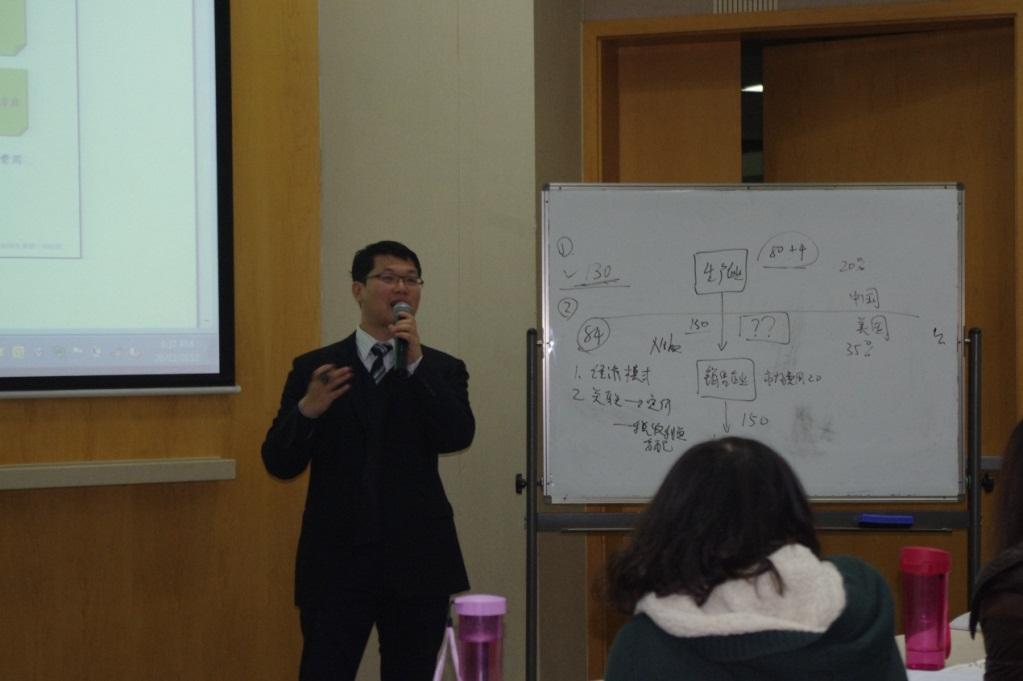 2012年11月26日晚18时许,“转让定价”实务模块课程如期举行。本课程由德勤税务及商务咨询中国税务技术中心税务合伙人叶永青主讲。叶先生通过层层递进的板书、循循善诱的提问,将大家引领进了多彩的转让定价世界。讲座长达三个小时,课后大家意犹未尽地围着叶先生继续探讨。事后,当得知叶先生是从公司赶过来且饿着肚子授课时,大家更觉受益匪浅。