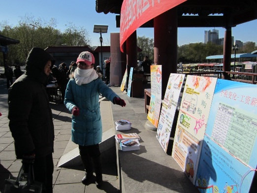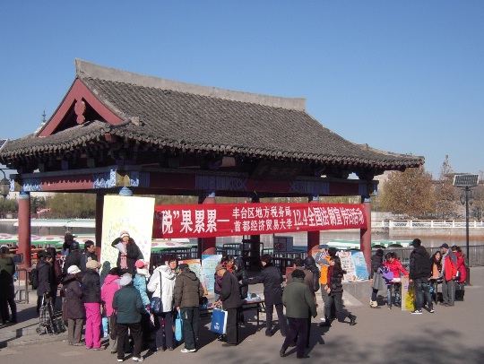 为了配合12月4日全国法制宣传日,首都经济贸易大学财政税务学院2012级税务专业硕士班同学,在北京西站附近的莲花池公园与北京市丰台区地方税务局联合举办了税收法制宣传活动。本次活动的主题为“税”果累累,活动目的是普及税法知识,让普通百姓对税收知识更加了解,做到知法、懂法。