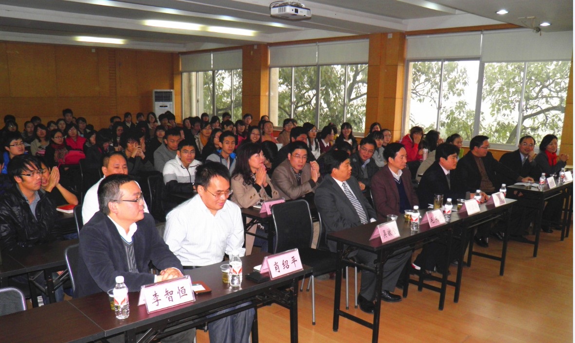 2012年11月23日下午3点,在财政税务系主任(税务专业学位项目负责人)谭光荣教授的精心组织下,湖南大学经济与贸易学院税务专业硕士学位实验基地授牌与导师聘请仪式顺利召开,经贸学院5个授牌基地的财务负责人、部分校外导师、经贸院领导、财政税务系部分老师、全体专业学位与财政专业研究生及部分本科生共同见证了湖南大学税务硕士专业学位教育发展史上这一具有里程碑意义的时刻。