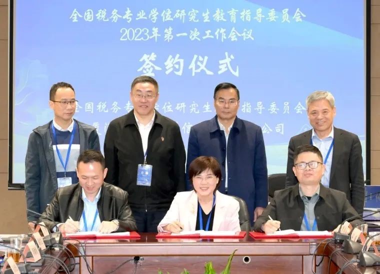 接着,会议进行了税务教指委与厦门市美亚柏科信息股份有限公司 、江苏税软软件科技有限公司的合作协议的签约仪式。签约仪式由税务教指委委员,西南财经大学刘蓉教授主持,税务教指委全体委员,厦门大学校长助理方颖教授,厦门市美亚柏科信息股份有限公司财务总监张乃军先生,美亚柏科电子数据取证与智能装备研究院副院长张辉极先生,江苏税软科技有限公司包志翔先生,美亚柏科电子数据取证与智能装备研究院行业经理李陈铖先生出席了签约仪式。